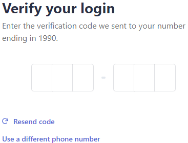 - Stripe will send a verification code to your phone. Enter it into the required fields.
