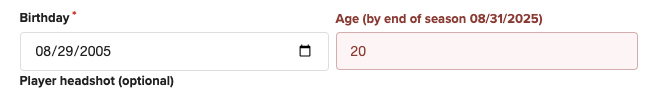 - Players must be within the age range of the grade selected for the team during team creation.