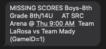 - If a score has not been sent into the Scorbot system between the end of one game, and the start of the next game, you will receive this error message reminding you to enter game scores.