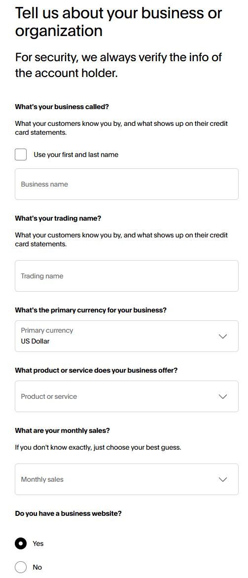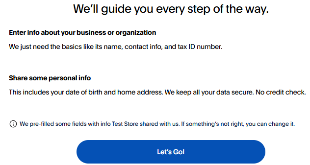 - Once you have selected "Setup PayPal Account", you will be redirected to the onboarding platform.