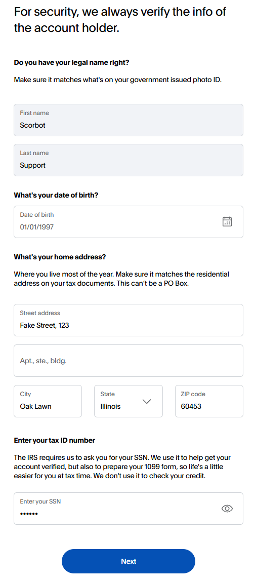 - This is to ensure that your payouts go smoothly, so be sure to enter the correct information.